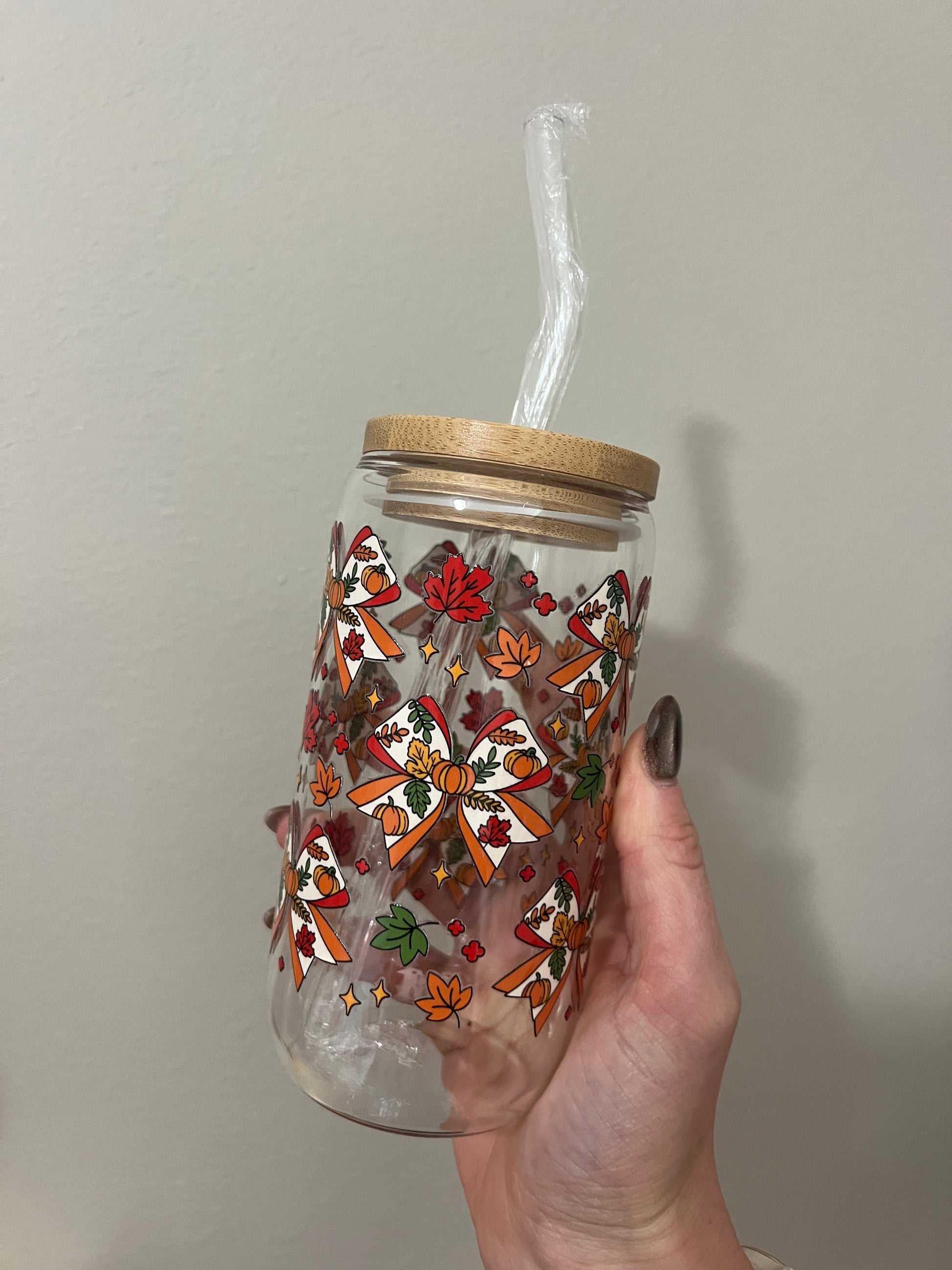 This 16oz Libbey Glass Cup comes with a UV DTF Wrap that is recommended to be hand washed. Your purchase will include a glass cup, lid, and straw.