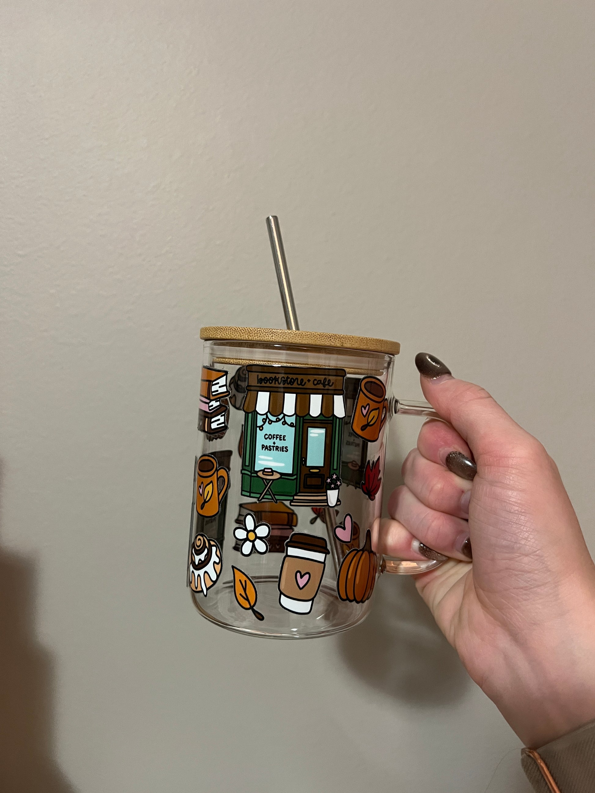 Fall Book Lovers 16oz Handled Glass Cup